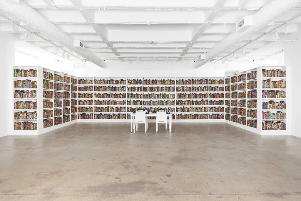 The solo exhibition features artwork spanning 20 years of Shonibare’s career, including The African Library (2018), part of Fondation H’s permanent collection. This monumental installation comprises 6,000 books wrapped in Dutch wax print fabric, each embossed with the name of a personality who shaped postcolonial Africa. The installation is complemented by a digital interface providing historical and biographical information about these figures.